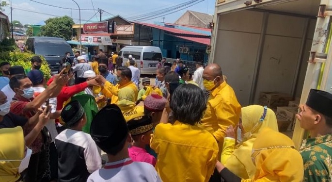 Kali ini, DPD Golkar Kepri membagi-bagikan minyak goreng secara gratis untuk masyarakat, di Masjid Darul Muhlisin Kabil Batam, pada Jumat (11/3/2022) kemarin.
